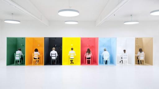 16 guests equipped with brain wave headsets got to experience 8 different environments in 8 different colors. Each setting was designed with restaurant attributes completely covered in a monochrome color – from walls and floor to furniture and tableware.