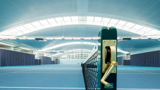 The Hurlingham Club is a green oasis of tradition, renowned throughout the world as one of the largest private clubs. The Racquet Centre, designed by David Morley Architects, has a sunken, low-profile shape and a curved green sedum roof to minimise the environmental impact of the building.