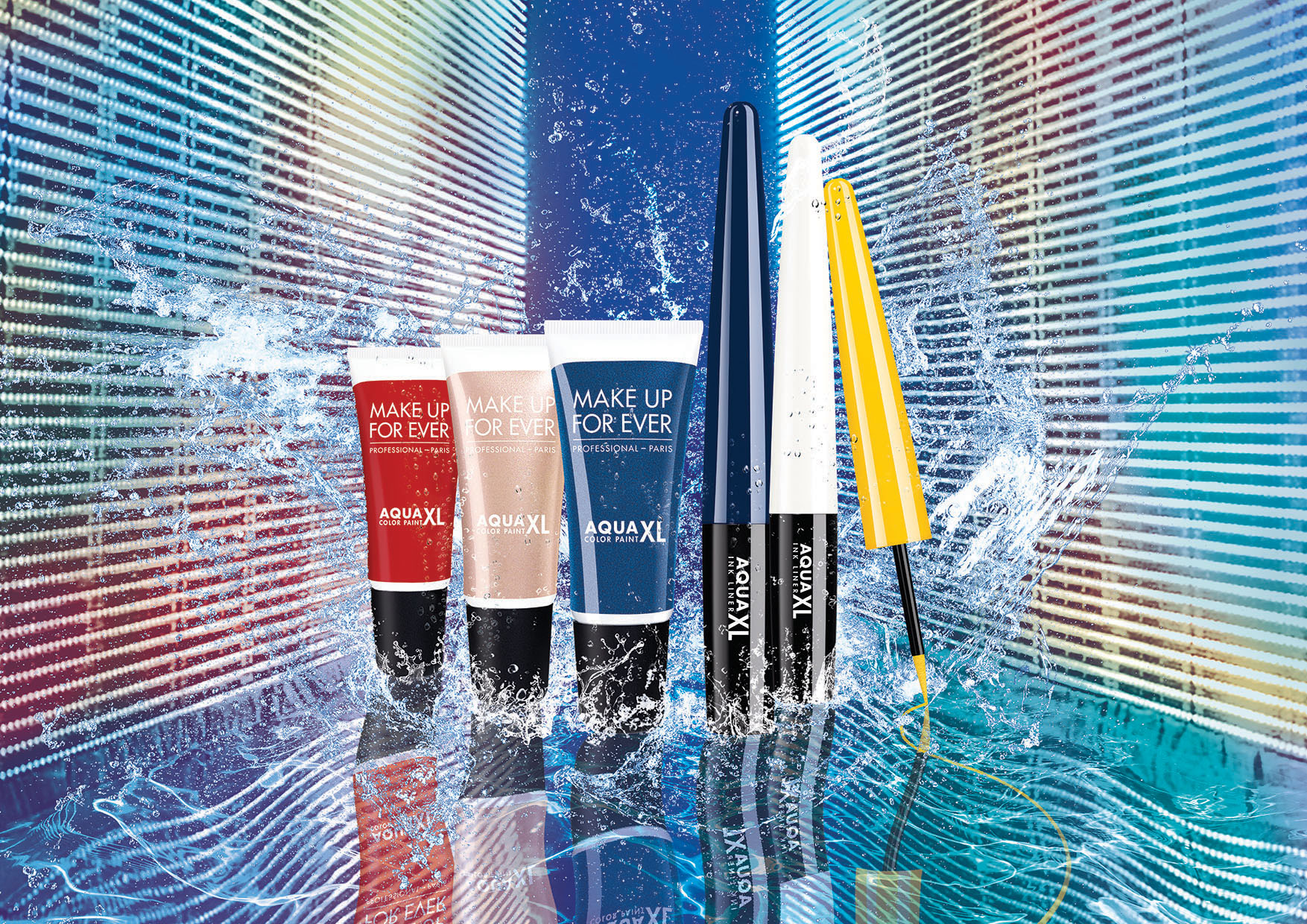Inspired by performers’ and backstage makeup artists’ needs since its 1984 beginnings, MAKE UP FOR EVER develops products to meet harsh environmental demands of discerning makeup users, and AQUA XL is no exception. The AQUA XL franchise, known for its extra-long wear, extra-pigmented colors and extra-easy glide, is tested on stage and in extreme conditions to ensure that color stays on until you take it off. The new AQUA XL COLOR PAINT, a versatile color cream eye shadow, and AQUA XL INK LINER, a rich, liquid eyeliner, are available in several vibrant and neutral shades with maximum color intensity and 24 hour wearing power.