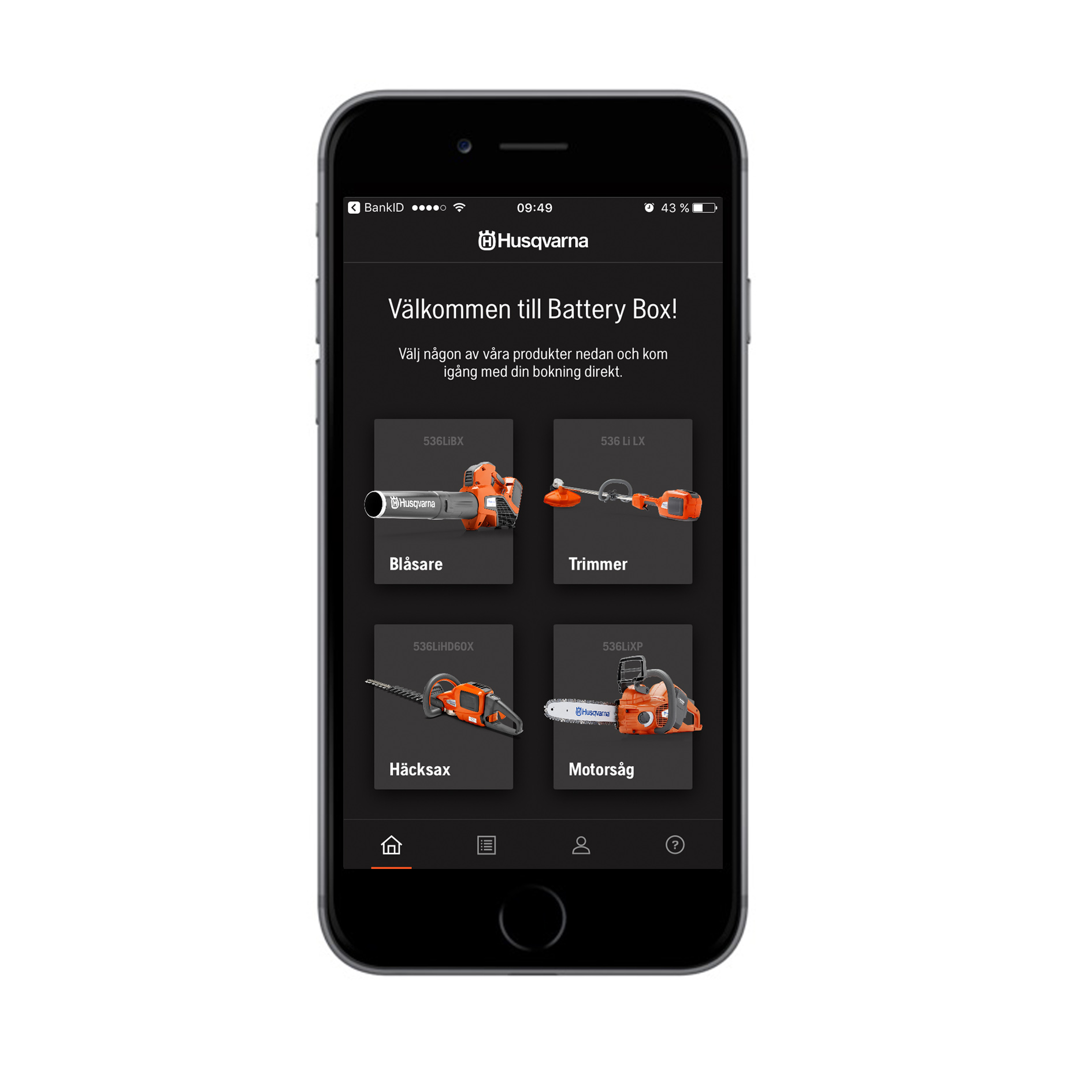 The connection between the Husqvarna Battery Box and the customer is enabled via Bluetooth. For identification purposes, the customer uses the Swedish ID app “BankID”. Payments are charged to the registered credit card at the end of the month. During the pilot period, the app is only available on iOS.