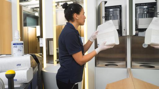 Luciana Cafaro, FARO site manager for Welle7, is certain that “without Tork EasyCubeTM, our job here at Welle7 could not be carried out as efficiently as is currently the case thanks to this system. Like all businesses, we are under pressure to save costs. Thanks to the system, we avoid unnecessary inspections because staff always know where they are needed. This saves us time and money and minimises stress.”