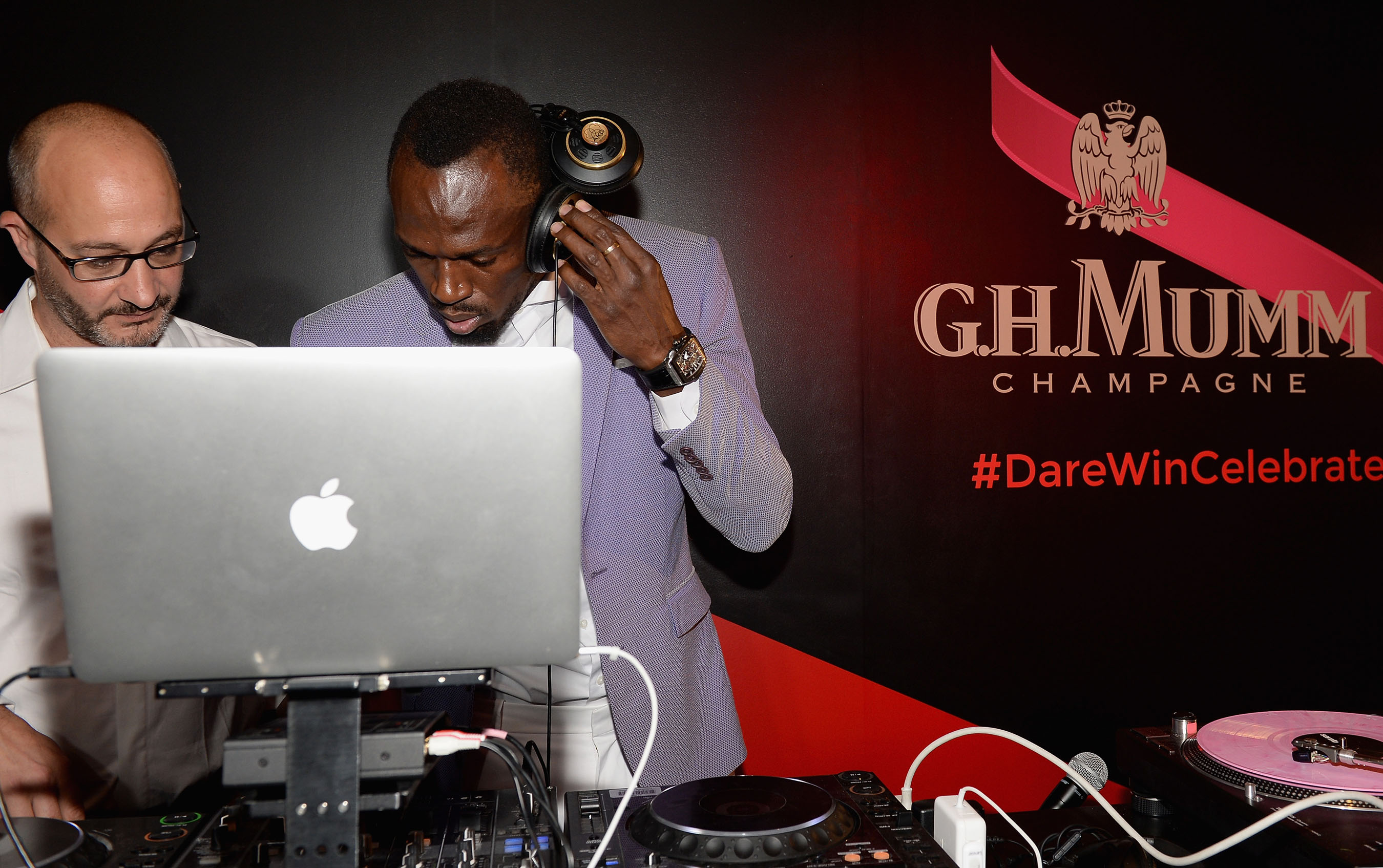 As Mumm's new CEO (Chief Entertainment Officer), Usain accomplished his first mission by taking over the Maison's US offices in New York City. The fastest man in the world shared his contagious party spirit among the employees and guests to showcase Mumm’s enduring partnership with the Kentucky Derby, along with the Maison’s values of DareWinCelebrate. His enthusiasm was so infectious that Mumm's cellar master even took a turn on the decks, leading to a memorable DJ battle with Usain. He also celebrated this daring moment with models Nina Agdal, Chanel Iman and actor Mario Cantone. Bolt's unique management role was captured on film by NBC's Access Hollywood crew: aired on the Monday following the race, the segment shows Usain DJing at Mumm's Daring Derby party and answering questions about his new role as CEO.