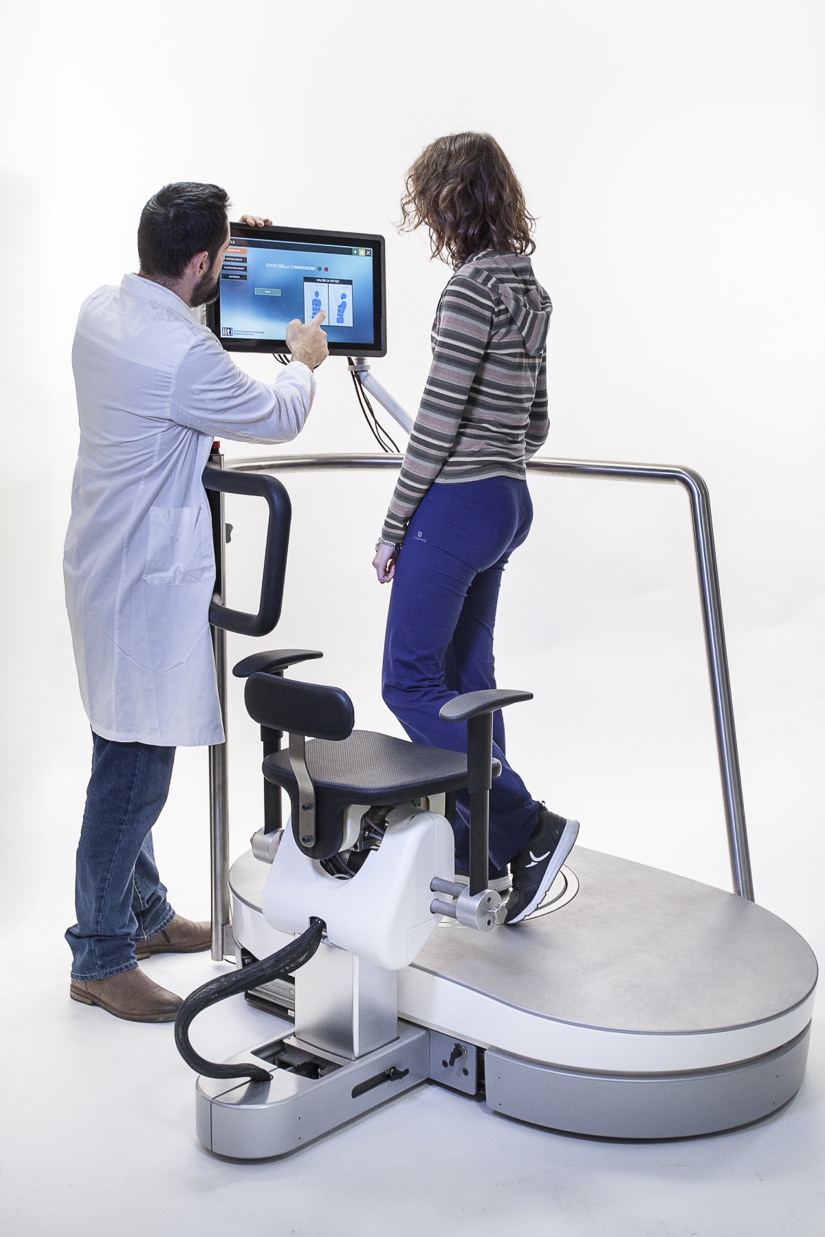 Hunova is a programmable robotic medical device that allows professionals in the geriatrics, neurology and sport rehabilitation field to cure and predict many neurological and orthopedic conditions. There are two main competitive advantages of this technology: Hunova is able to collect a significant amount of data on biomechanics, constantly monitoring the patient’s progress. Secondly, it provides direct support to the patient through a guiding robotic system, offering a wide range of rehabilitation protocols in the form of video games. It consists of two electromechanical platforms equipped with sensors, characterized by two degrees of freedom (feet and seat level). The device integrates the force sensors to adjust the interaction with the patient and a wireless sensor, which is placed on the patient’s trunk, allowing the physiotherapist to check the movement of the torso.