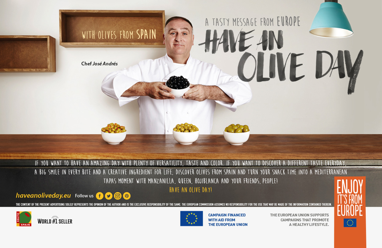 Manzanilla, Hojiblanca, Queen ... are the three main varieties that we will find, although in the Spanish olive grove, the biggest in the world, they grow many more. There, they are carefully collected so that the US consumer can enjoy them in all its splendor, in any of the immense range of presentations at their fingertips, from whole with the bone to deboned, diced or stuffed. They can be in our next meeting or in our lunch box, to put a smile to the back to work without weighing us down. Thanks to the promotion campaign of the European Union and Spanish Olives, we now know how to prepare them, following the instructions of chef José Andrés, Ambassador of the olives in USA.