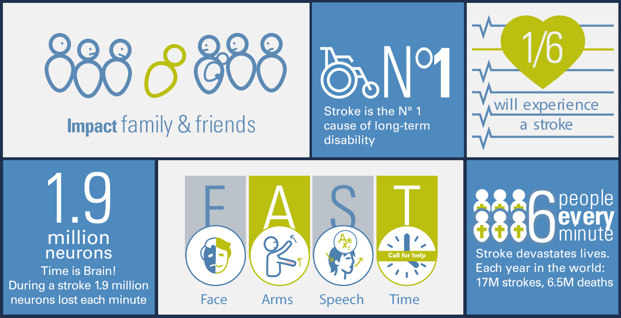 Stroke is the second leading cause of death, and the leading cause of long-term disability worldwide – 17 million people suffer a stroke each year and 6.5 million die as a consequence. A stroke can happen at any age, with one in six people experiencing a stroke during his/her lifetime.