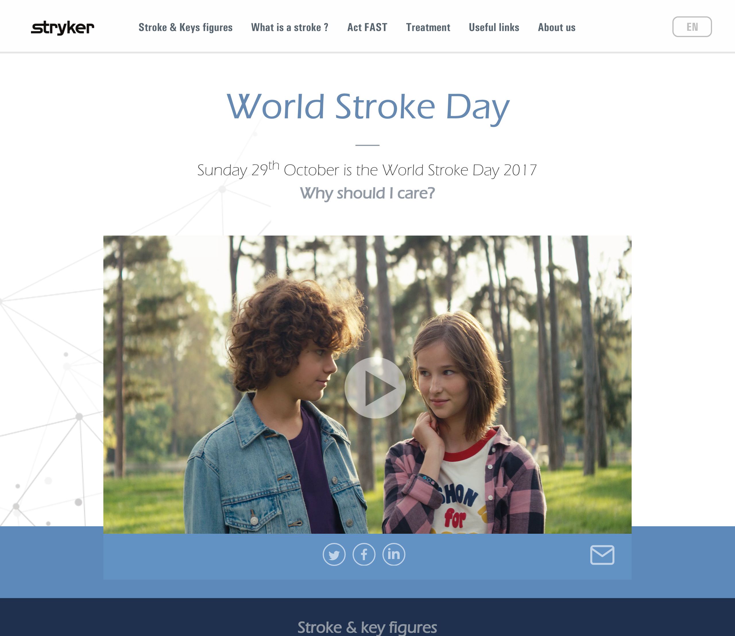 Started by the World Stroke Organization (WSO), World Stroke Day is an annual event aimed at raising awareness about the prevention and treatment of stroke within the community. In support of this mission, Stryker hopes to see the signs of a stroke become unmistakable everywhere, and is spreading the word via their “Some signs save lives” campaign.