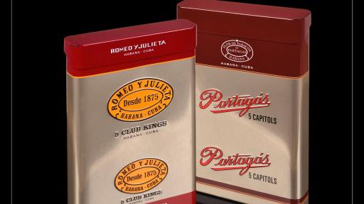 The Partagás Capitols and Romeo y Julieta Club Kings cigar cases feature a technical design developed exclusively for Habanos, S.A. that will solely be used for the Línea Retro product launches.