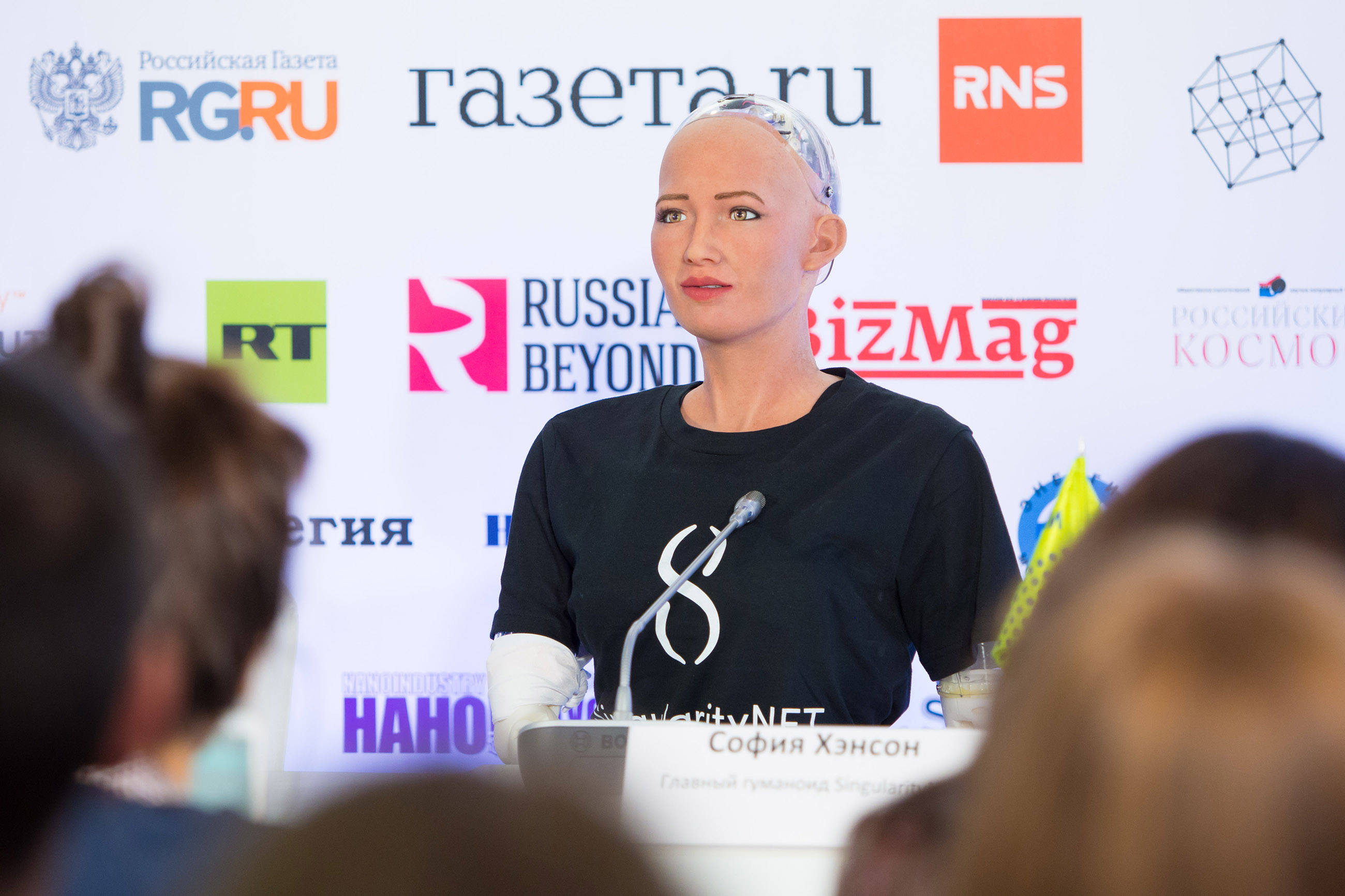 The highlight of the final day of the Open Innovations was a press conference of Sofia, the android, who made a speech with one of her creators Ben Goertzel from SingularityNet. Sofia answered questions of journalists and commented on Dmitry Medvedev’s concerns that artificial intelligence can reset human brains to zero.
