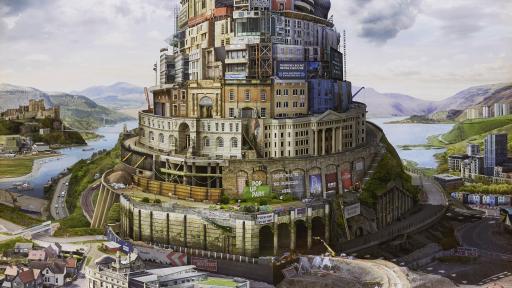 Emily Allchurch, Babel Britain (After Verhaecht), Digital collage as a transparency on bespoke LED lightbox