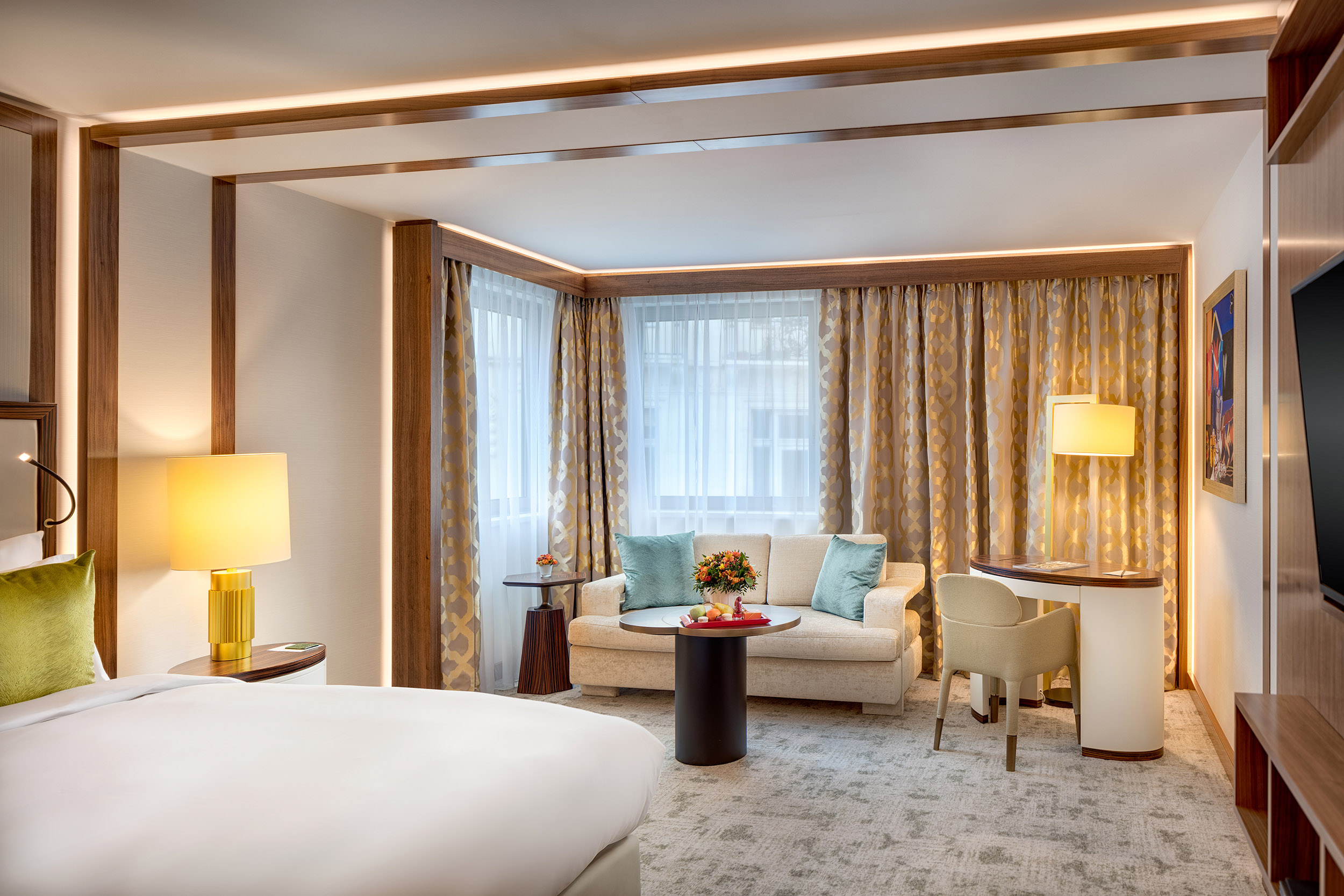 The spacious Premium Grand Deluxe Rooms and Premium Junior Suites have been rebuilt from top to bottom based on plans by noted British designer Alex Kravetz. The new unites invite our guests to stay and enjoy the interior vibe with a comfortable seating area, abundant sunshine, and a light-enhanced separation of functions within the room. Featuring a soft colour palette of elegant gold, reserved platinum and muted grey, as well as warm, dark brown wood, the redesigned spaces represent more than just rooms: they reflect contemporary aesthetics and the design-savvy sensibility of the modern traveller who expects a sensory experience and a place of comfort within the hotel. Shades are upgraded with blackout blinds, while smart LED TVs guarantee better connectivity to guests’ devices.