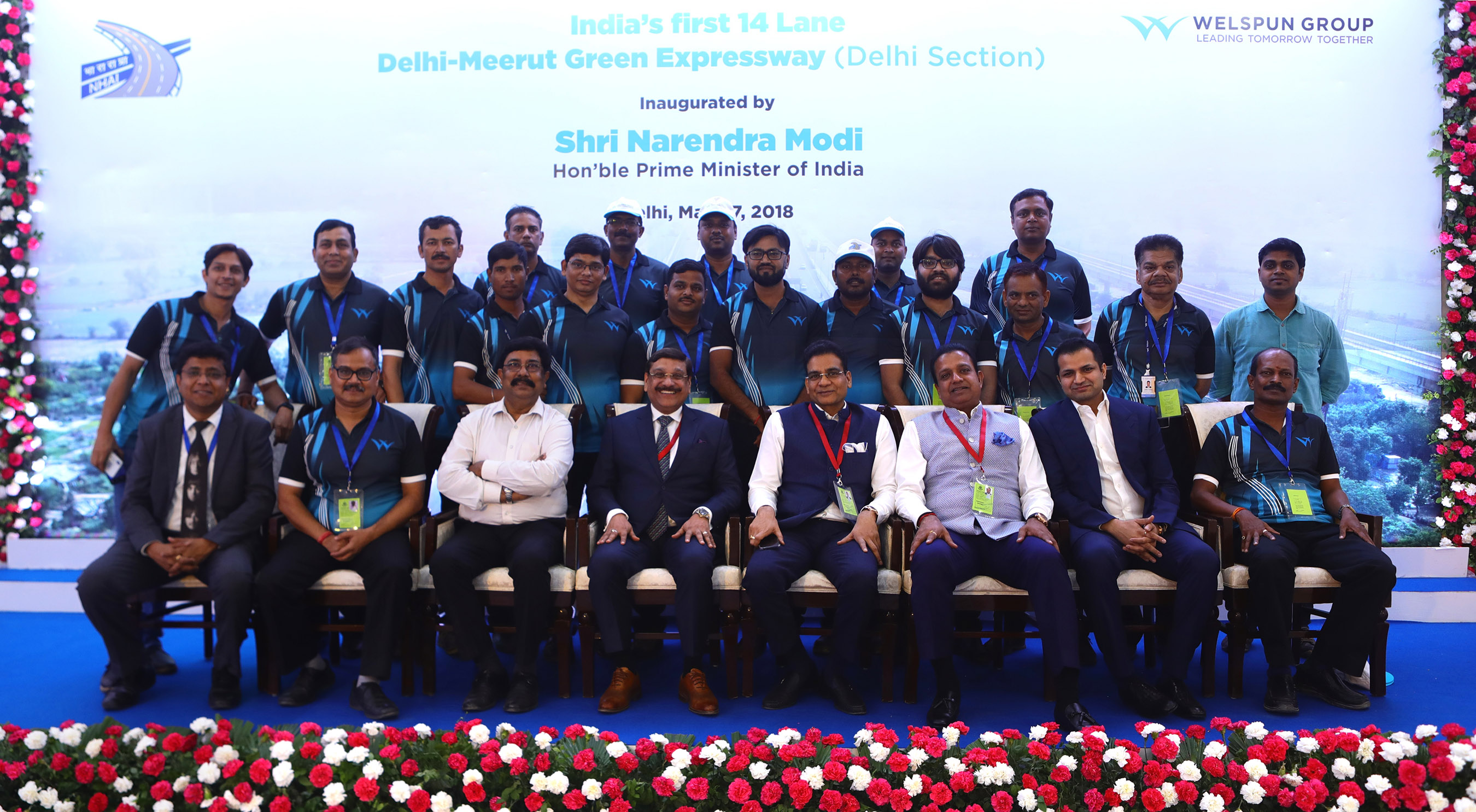 Delhi 27th May, 2018: Shri Narendra Modi, Honorable Prime Minister of India today inaugurated India’s first 14 lane Expressway – The Delhi-Meerut Expressway (Delhi Section) from Nizamuddin Bridge to UP border, proudly developed by NHAI and Welspun Enterprises Ltd. under Hybrid Annuity Model. Shri Nitin Gadkari - Honorable Union Minister for Road Transport & Highways, Shipping and Water Resources, River Development & Ganga Rejuvenation, Shri Mansukh L. Mandaviya - Honorable Union Minister of State for Road, Transport & Highways, Shipping and Chemical & Fertilizers, Shri Maheish Girri - Member of Parliament, Shri Rajendra Agrawal – Member of Parliament, Mr. B. K. Goenka – Chairman of Welspun Group and Mr. Sandeep Garg – MD & CEO, Welspun Enterprises Ltd. were also present on this milestone occasion.
