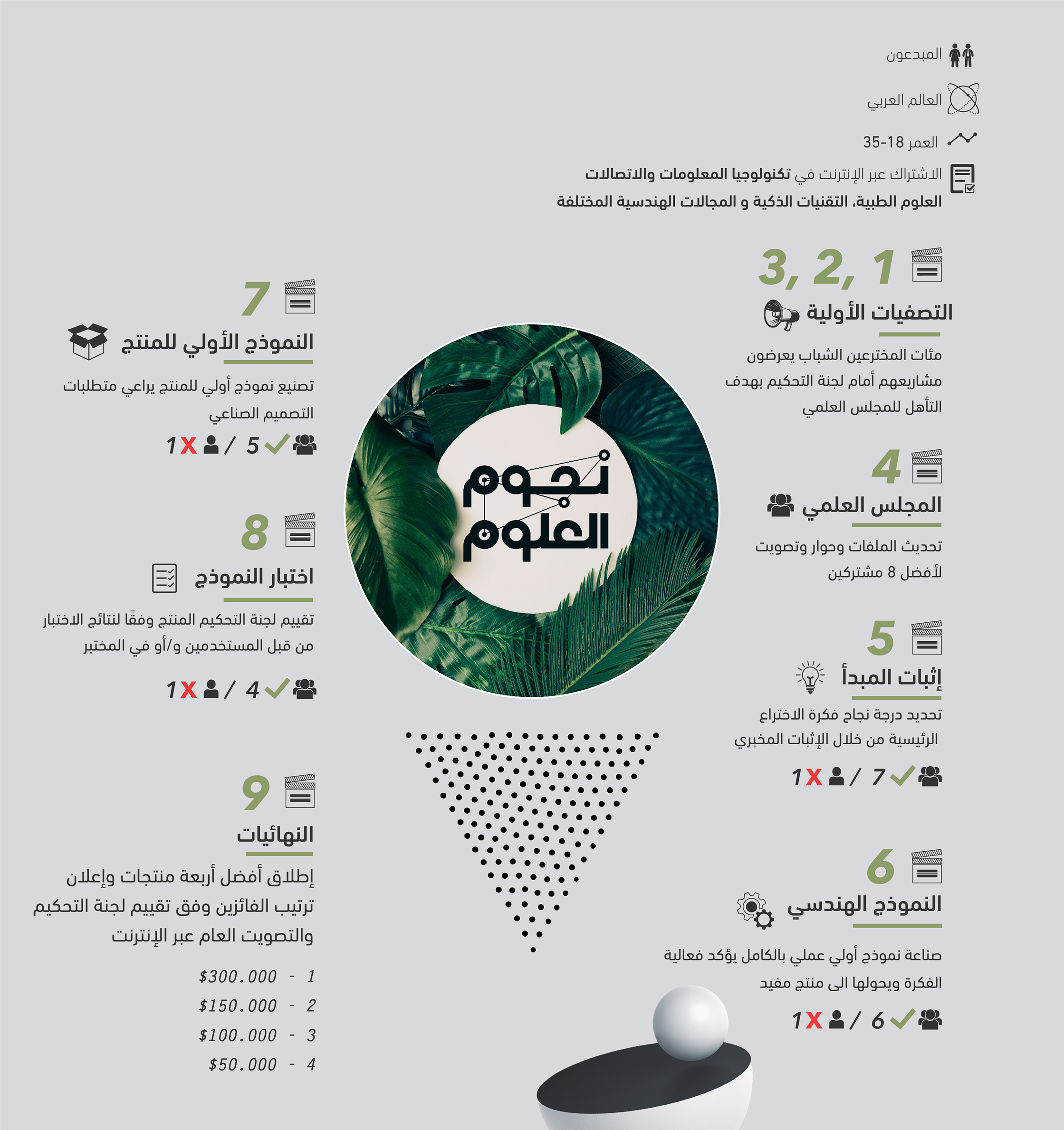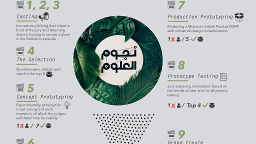 In small groups, the jury will competitively assess the participants and eliminate the weakest project in every episode. The show will also host leaders of science, technology, engineering, and mathematic (STEM) institutions in Qatar, who will provide the contestants with realistic opportunities and challenges.