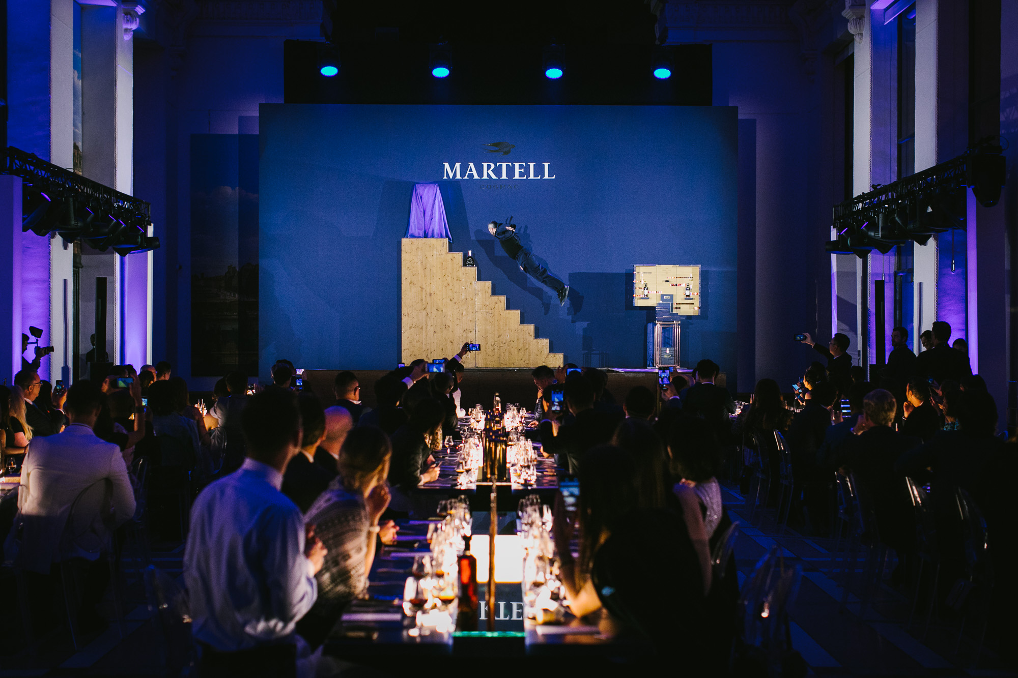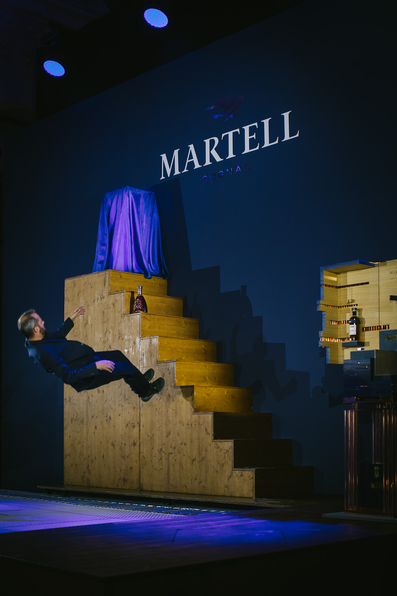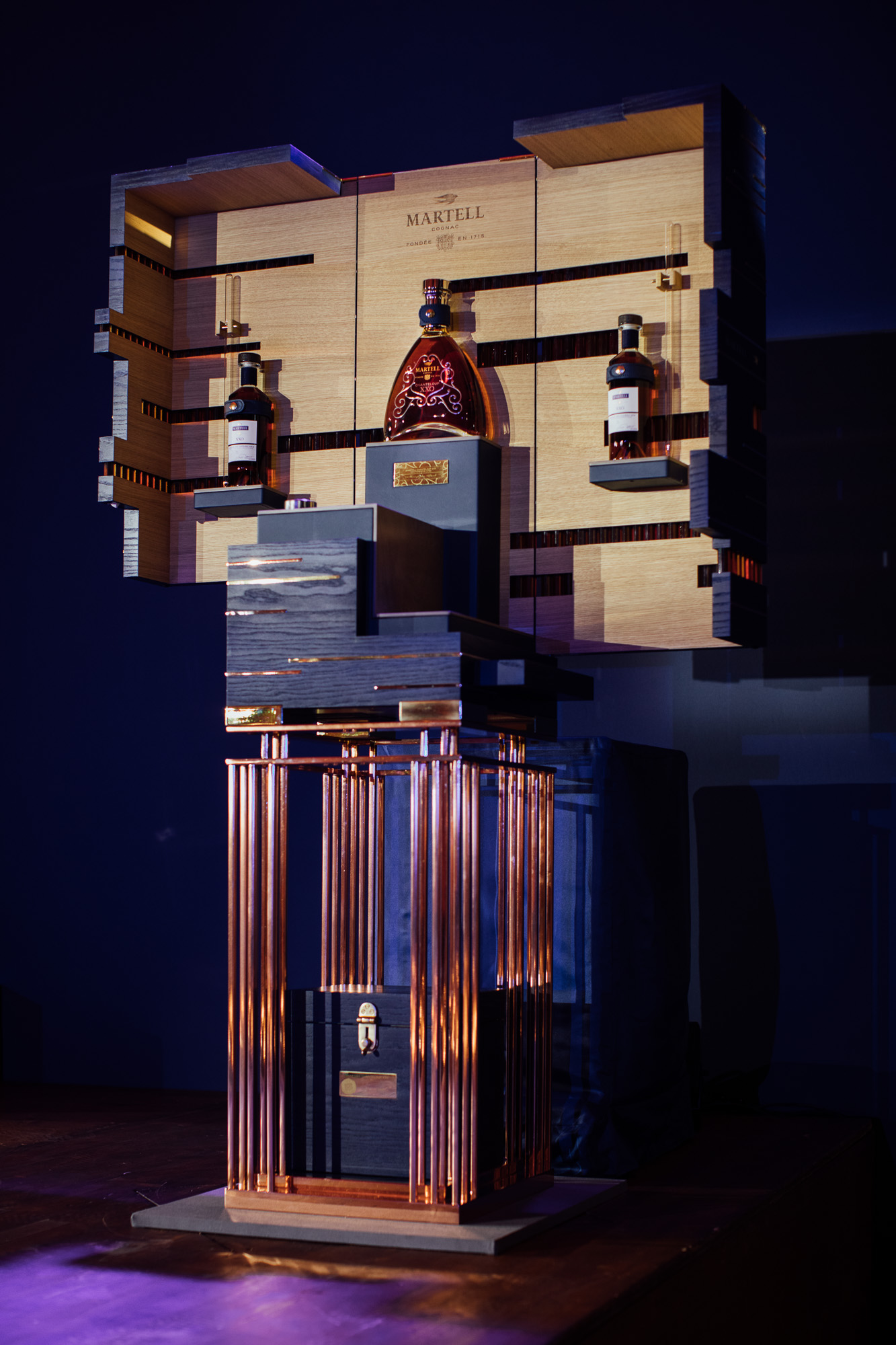 Martell Chanteloup XXO and the Martell Chanteloup XXO Masterpiece were revealed as part of a breath-taking trampoline performance created exclusively for Maison Martell by acrobat and choreographer Yoann Bourgeois. Initially concealed under silk veils, the trunk was gradually uncovered as, with each perfectly controlled jump, Yoann Bourgeois lifted off the veils one by one. At last, at the climax of his performance, the Martell Chanteloup XXO Masterpiece and the exceptional cognac inside were dramatically revealed to the amazed and delighted audience.