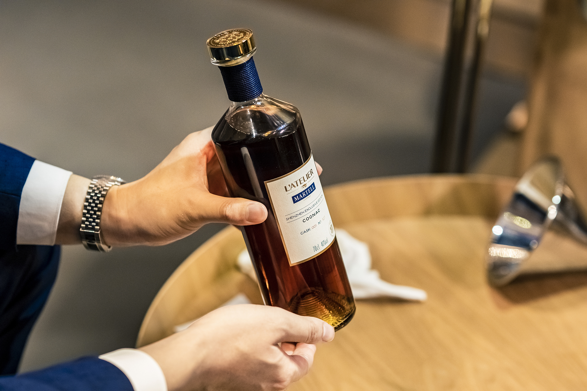 The concept of L’Atelier Martell reaches its fullest expression in the impressive array of personalised services and experiences, which put the client front and centre. Among the highlights is the Cognac from the Cask Experience, featuring a VSOP cognac created especially for L’Atelier Martell Shenzhen by Martell Cellar Master Christophe Valtaud. Shenzhen Exclusive Edition is a refined blend with subtle spicy notes, which pays tribute to China and pairs ideally with Chinese cuisine. Clients can draw it directly from a cask shipped from Cognac into their own montre bottle, which is then customised with their choice of cork and a hand-printed label. L’Atelier Martell Shenzhen also provides a custom-engraving service which allows clients to mark a special occasion by personalising the bottle of House icon Martell Cordon Bleu with their chosen motif and message.