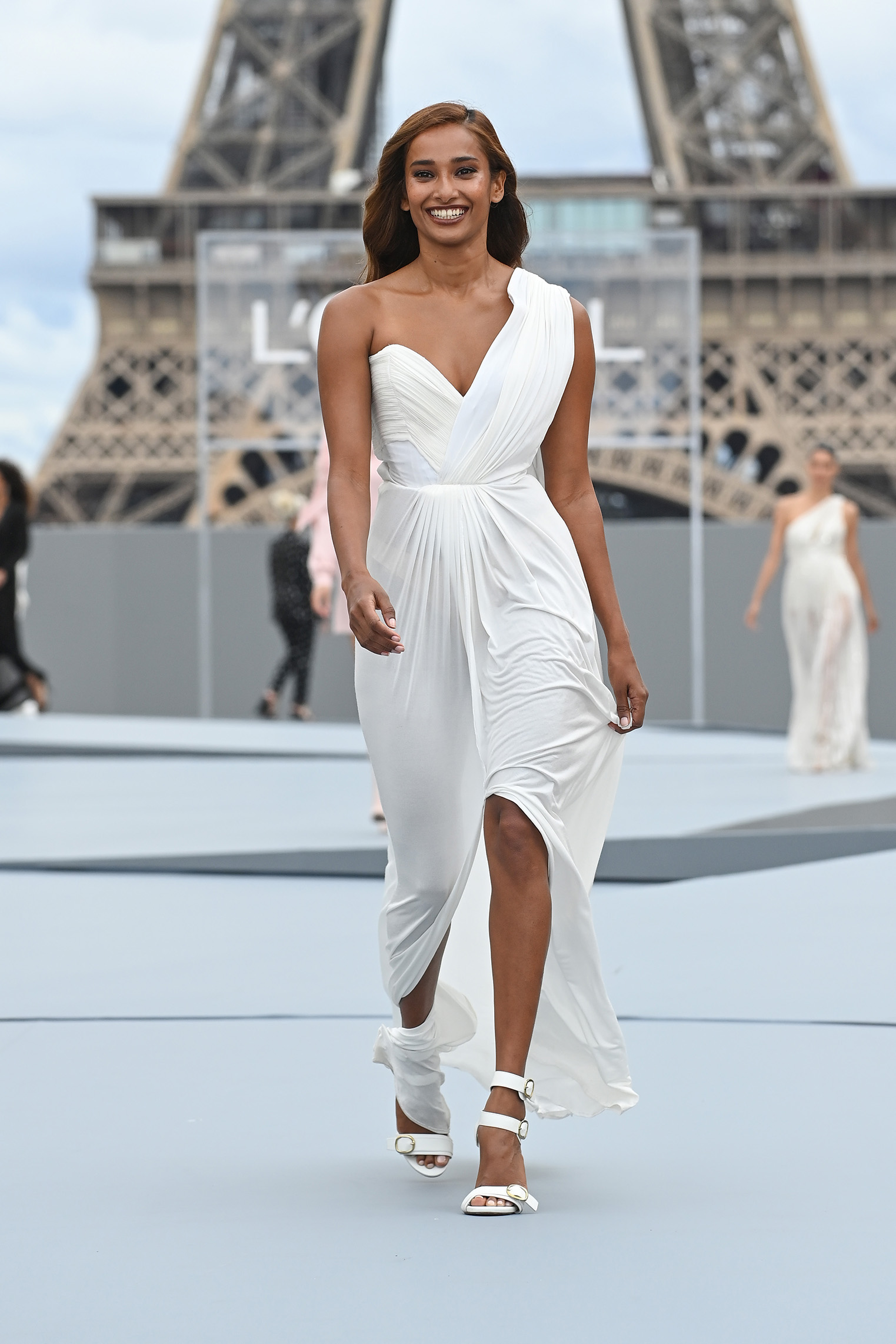 This year, “Le Défilé L’Oréal Paris” took a bold departure from the format of typical fashion shows, amplifying the brand’s central theme of self-worth, freedom of movement and self-expression. Hosted at the Parvis des Droits de L’Homme an esplanade at the foot of the Palais de Chaillot with a panorama view of the Eiffel tower, where the Universal Declaration of Human Rights was first adopted the show transformed the historic space into the Parvis des droits de l’Homme et de la Femme. This empowered approach was designed to align with and amplify the brand’s global outreach program, “Stand Up Against Street Harassment”, established in 2020 and currently present in over 20 countries. As a feminine and feminist brand, L’Oréal Paris believes that women should be empowered to walk without fear of harassment and to believe in her own sense of worth.