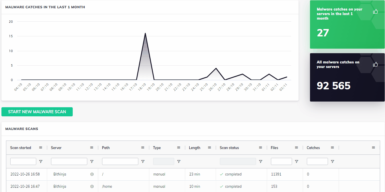Now that BitNinja has a remodeled, super-fast malware scanner, the scanning time has been reduced by up to 90%. The new two-phase approach—Quick Scan followed by Deep Scan—is designed to give server owners and hosting providers peace of mind knowing that their server is thoroughly protected from malware without taking up too much of their time.