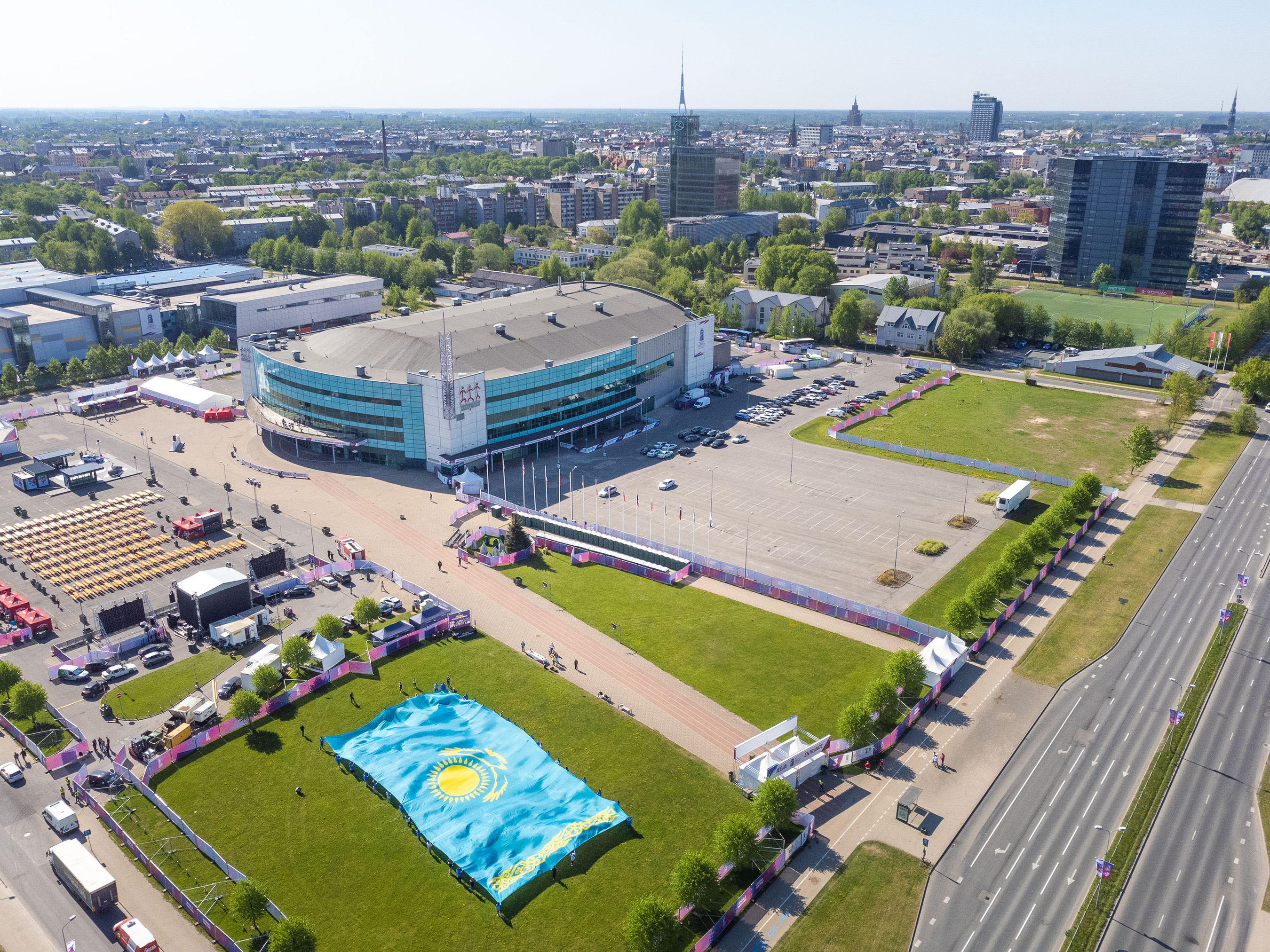 Hockey fans in Riga unfurled the largest flag of Kazakhstan. With this unique initiative, fans showed their support for the Kazakhstan national hockey team participating in the World Championship of Hockey. The event took place on May 13 at the square near the "Arena Riga" sports complex, where the first games of the Championship have started these days.