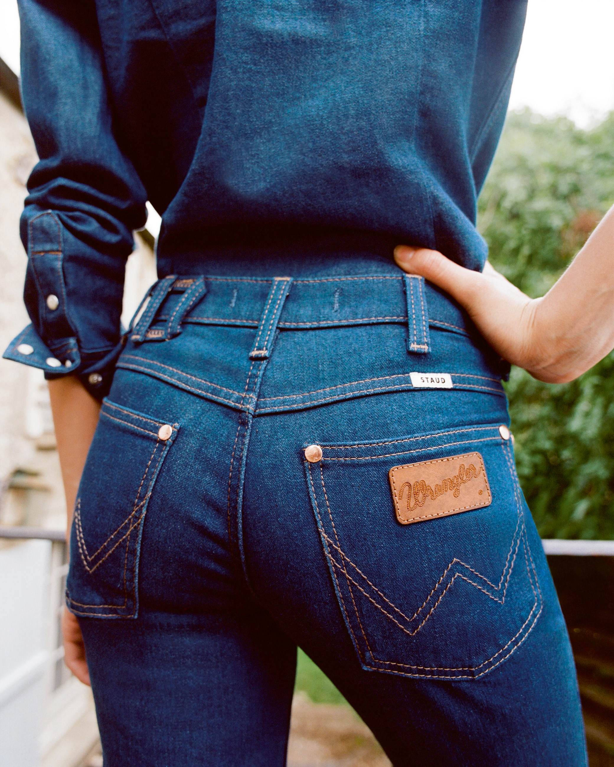 September 7, 2023 (LOS ANGELES, CA) — STAUD, the Los Angeles-based fashion brand, announces its collaboration with Wrangler®, the legendary global jeanswear brand. This partnership marks a union of two American fashion industry leaders, combining STAUD's modern California aesthetic with Wrangler's deep-rooted authority in denim and the authentic western lifestyle.