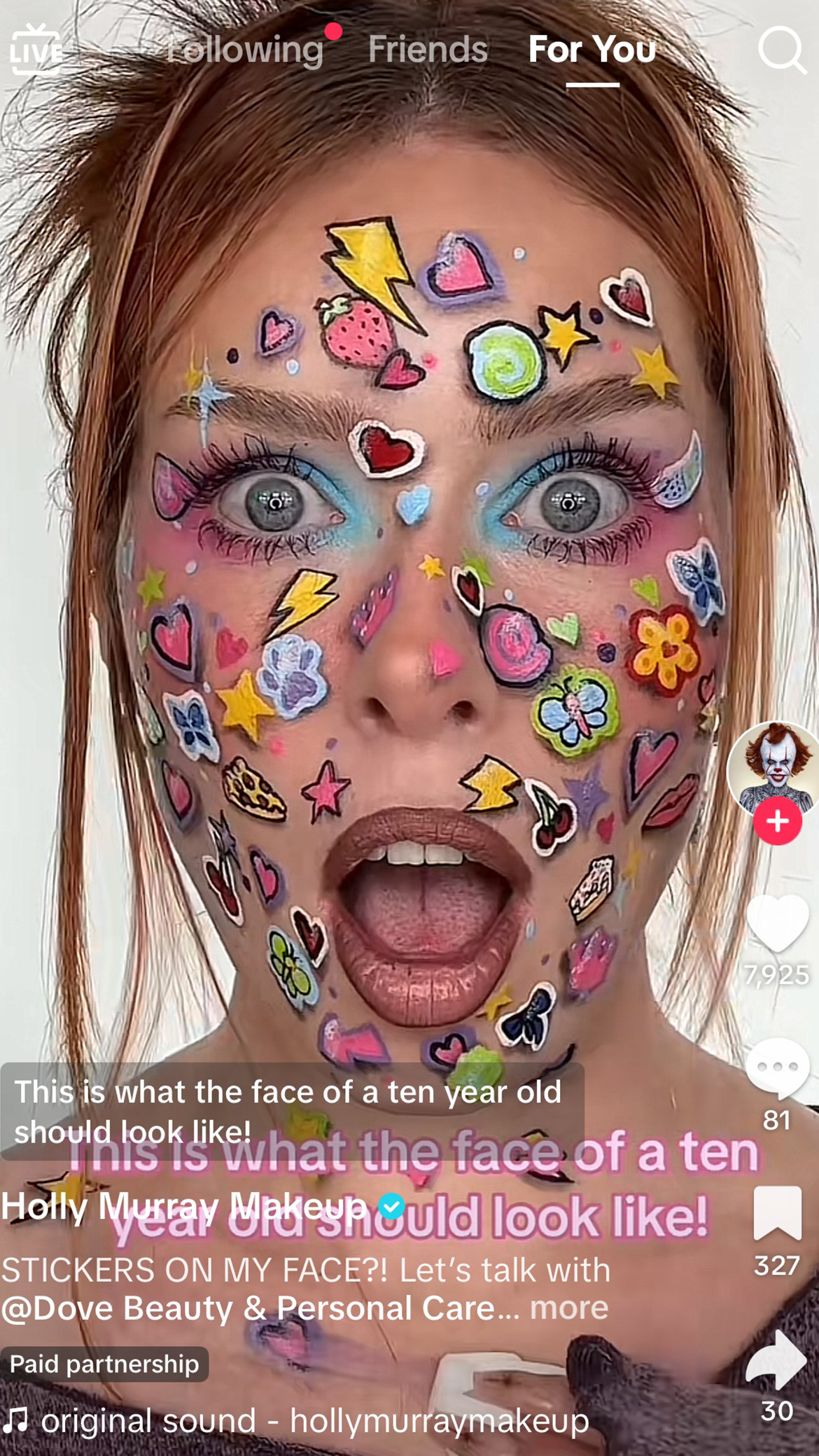 Dove, together with powerful TikTok voices (academic experts, dermatologists, creators, body confidence advocates and more), aims to highlight the absurdity of the issue and raise awareness of it through thumb-stopping creative content featuring impactful, decorated faces representing #TheFaceofTen, and what it should be covered with – more glitter, stickers, and face paint – not retinol and inappropriate anti-aging skincare ingredients and products.