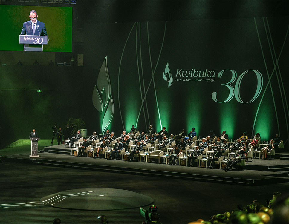 World leaders past and present gathered in Kigali, Rwanda, to remember the victims of the 1994 Genocide against the Tutsi. Over a dozen current and former Heads of State attended. They joined President Paul Kagame to lay wreaths and light the commemoration flame at the Kigali Genocide Memorial, and thereafter they participated in the national ceremony at BK Arena, marking the official start of Kwibuka30. Kwibuka means ‘to remember’ in Kinyarwanda (the national language of Rwanda).