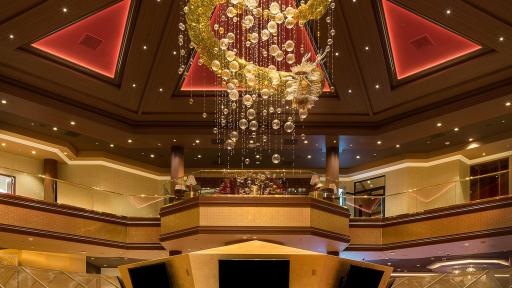 在宝塔吧和赌场大厅的上方,悬挂着1.25吨重的镇店之宝——玻璃水晶祥龙吊灯。在世界著名的捷克水晶谷打造,这具长超7米的祥龙吊灯将为赌客带来好运与财富!