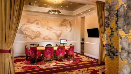 两间高额赌室——碧绿点缀的翡翠阁坐落于1楼赌场大厅,奢华装修的VIP赌室坐落于2楼。这两间高额赌室将为威龙的重要顾客提供更私密和专有的至尊服务。