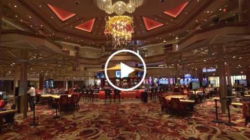 超过2500平米的赌场大厅包围在一楼宝塔吧的周围,37张赌桌和287台老虎机整齐摆放。赌桌游戏着重安排了深受亚裔喜爱的百家乐和牌九,除此之外还设有俄罗斯转盘,21点,三张牌扑克,和德州扑克。