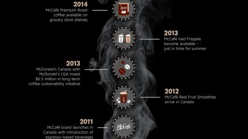 In 2008, McDonald’s Canada started its journey to become recognized for great tasting coffee. Since the launch of its first Free Coffee event in April 2009, the company has given away more than 138 million cups of coffee over 13 events. In 2011, the McCafé brand was officially launched with the introduction of espresso-based beverages which was followed with Real Fruit Smoothies in 2012 and the successful launch of McCafé Premium Roast Coffee through grocery channels in 2014. Today, coffee sales have tripled and the brand has more than doubled its coffee market share, outpacing the growth of the industry overall, reinforcing its position as a dominant player in the Canadian quick-service coffee industry.