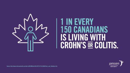 Crohn’s disease is a chronic inflammatory condition of the gastrointestinal tract that affects approximately 129,000 Canadians.4 In Canada, approximately one in every 150 Canadians is living with Crohn’s or colitis.5