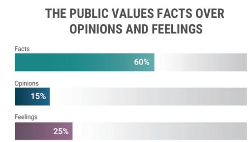 Despite this finding, or perhaps because of it, journalists report being increasingly committed to accuracy – 92 per cent of respondents said that being right is more important than being first, up four per cent from 2016. Sixty per cent of journalists stated that they believe the public values facts over opinions or feelings.
