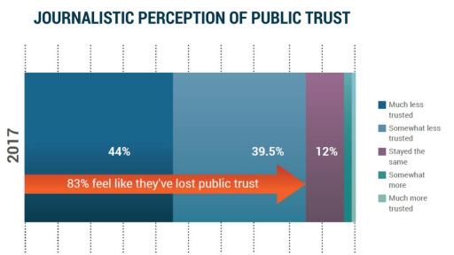 - Journalists are also less trusting – of social media. Despite using social media more frequently, only 44 percent of journalists feel that social media is a reliable source of information, down seven per cent from 2016.