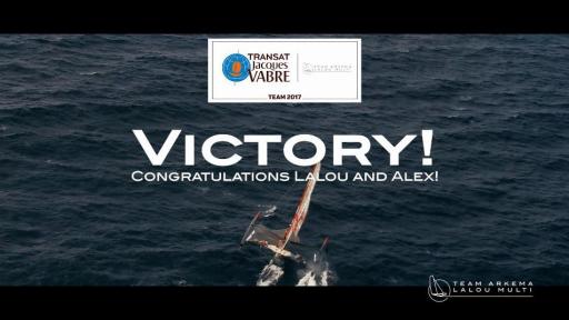 Lalou Roucayrol et Alex Pella sont d’emblée entrés dans le match et ont constamment occupé l’une des deux premières places parmi la flotte des six Multi50 en lice. Forts de leurs expériences respectives et d’une très bonne entente à bord, les deux skippers ont su pousser leur machine dans des conditions de vent soutenu qu’elle affectionne. Dans la longue descente de l’Atlantique vers Salvador de Bahia, le duo franco-espagnol a mené un joli duel avec FenêtreA-Mix Buffet skippé par les redoutables Erwan Le Roux et Vincent Riou. Bien que formé sur le tard, le binôme aux commandes d’Arkema décroche une superbe victoire, la première pour Lalou en neuf participations à la Transat Jacques Vabre.