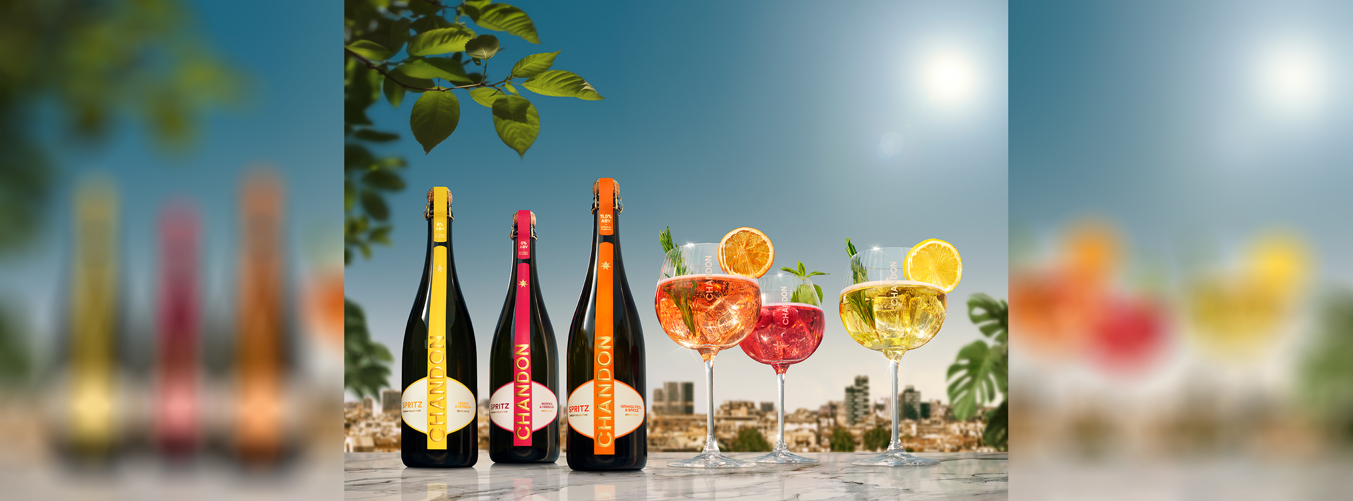 CHANDON lovers come in different flavors, and now, so does CHANDON Spritz. For our new collection, three is the magic number: the Maison that’s been opening up a world of possibilities in sparkling wine since 1959 is popping the cork on a trio of fresh, ready-to-serve Spritzes. The CHANDON Spritz collection spans a choice of flavors and intensities, from refreshingly bitter Orange Peel & Spices at 11.5% to delicious Berries & Hibiscus and zesty Lemon & Verbena, both at 6% ABV. Crafted for every taste with natural flavors, they’re ready when you are: just pour over ice, garnish, and serve.
