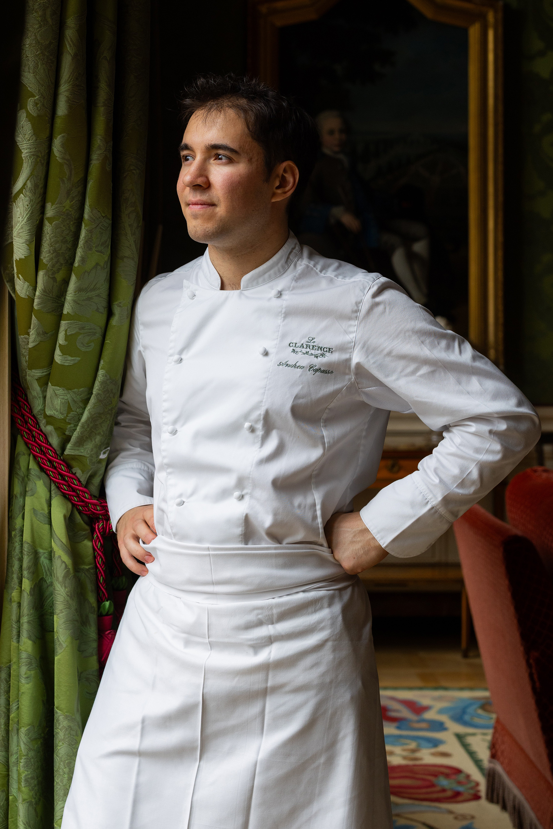 In his early thirties, with fourteen years of experience already behind him, Andrea Capasso brings to Le Clarence an energy that is both serene and vibrant. Having been part of the restaurant for seven years, he now embodies both its continuity and momentum. His cuisine goes beyond technical mastery, it is something to be felt. Conceived as an enveloping and electrifying score unfolding in sequences, his culinary writing explores the essence of carefully selected ingredients, worked with precision and then elevated to reveal multiple expressions, sometimes unexpected, always clear. A guiding thread of enveloping delicacy and fine acidity extends each bite, while the land-and-sea pairings so dear to Le Clarence take on a new dimension. Andrea Capasso cooks to move and restore through emotion, a sincere approach that leaves guests with a lasting desire to return.