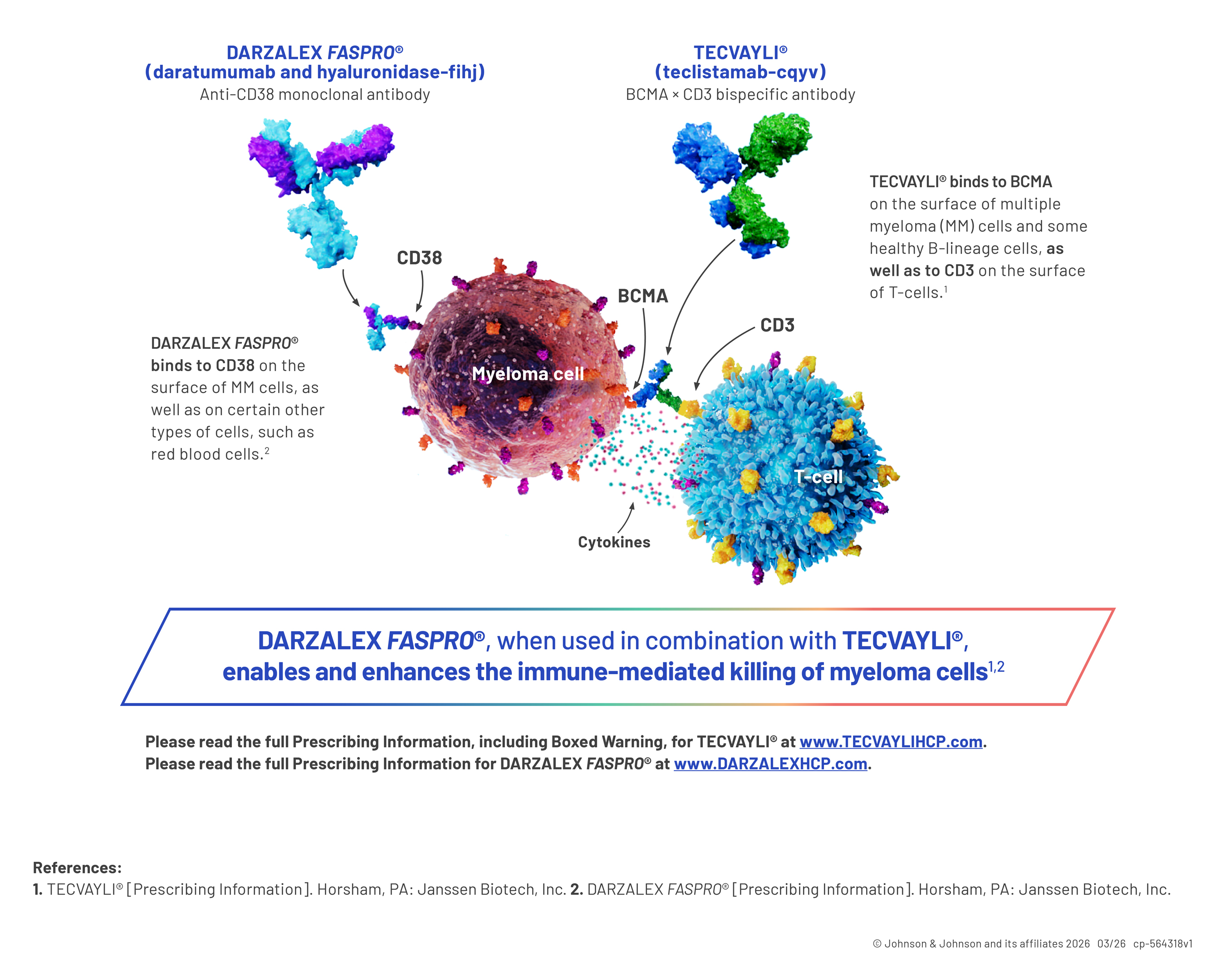 - U.S. FDA Approves TECVAYLI® (teclistamab-cqyv), the First Bispecific T-cell Engager Antibody for the Treatment of Patients with Relapsed or Refractory Multiple Myeloma. https://www.jnj.com/u-s-fda-approves-tecvayli-teclistamab-cqyv-the-first-bispecific-t-cell-engager-antibody-for-the-treatment-of-patients-with-relapsed-or-refractory-multiple-myeloma. Accessed December 2025.
