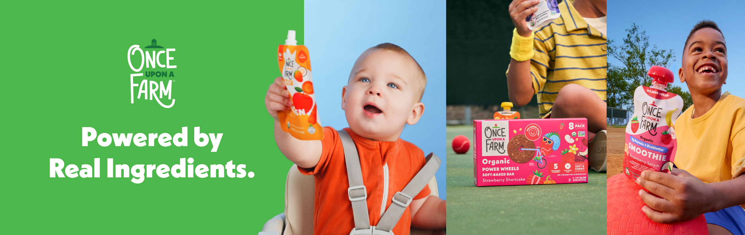 Berkeley, CA - (March 31, 2026) - Once Upon a Farm, the mission-driven brand known for bringing organic, farm-fresh nutritious snacks and meals to families, is bringing to market an innovative expansion of its pouch product portfolio to include Meat and Meat & Bone Broth, Legume Blends, Smoothies with Protein & Probiotics, as well as a new line of kids’ shelf-stable snack bars, Power Wheels. These new organic food products crafted for children from baby through big kid will be available at select retailers and direct-to-consumer at onceuponafarmorganics.com beginning early April 2026.