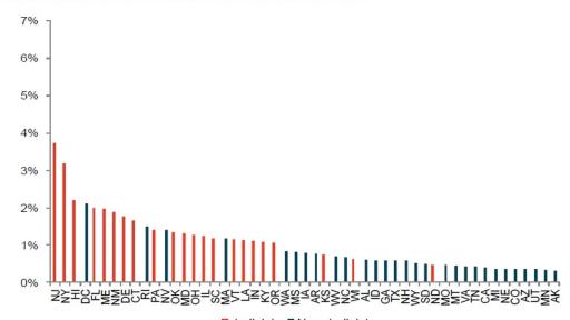 - Four states and the District of Columbia had the highest foreclosure inventory rate: New Jersey (3.7 percent), New York (3.2 percent), Hawaii (2.2 percent), the District of Columbia (2.1 percent) and Florida (2 percent).