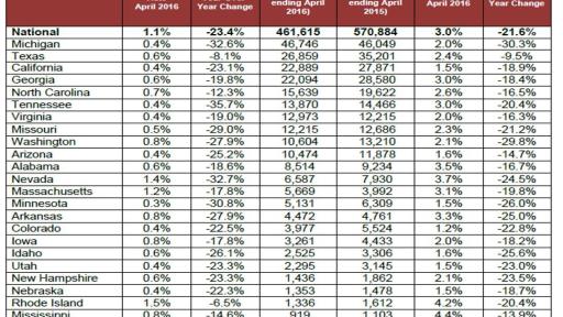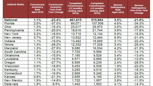 —National Foreclosure Inventory Down 23.4 Percent from April 2015—