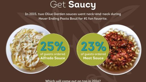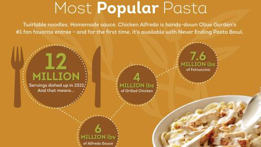 “For more than 20 years, Never Ending Pasta Bowl has become an iconic promotion among families since each guest can create their favorite custom pasta dishes for a great value,” said Jose Duenas, executive vice president of marketing for Olive Garden. “This year, by popular request, we’ve added Chicken Alfredo—giving our fans unlimited refills of their all-time favorite entrée.”