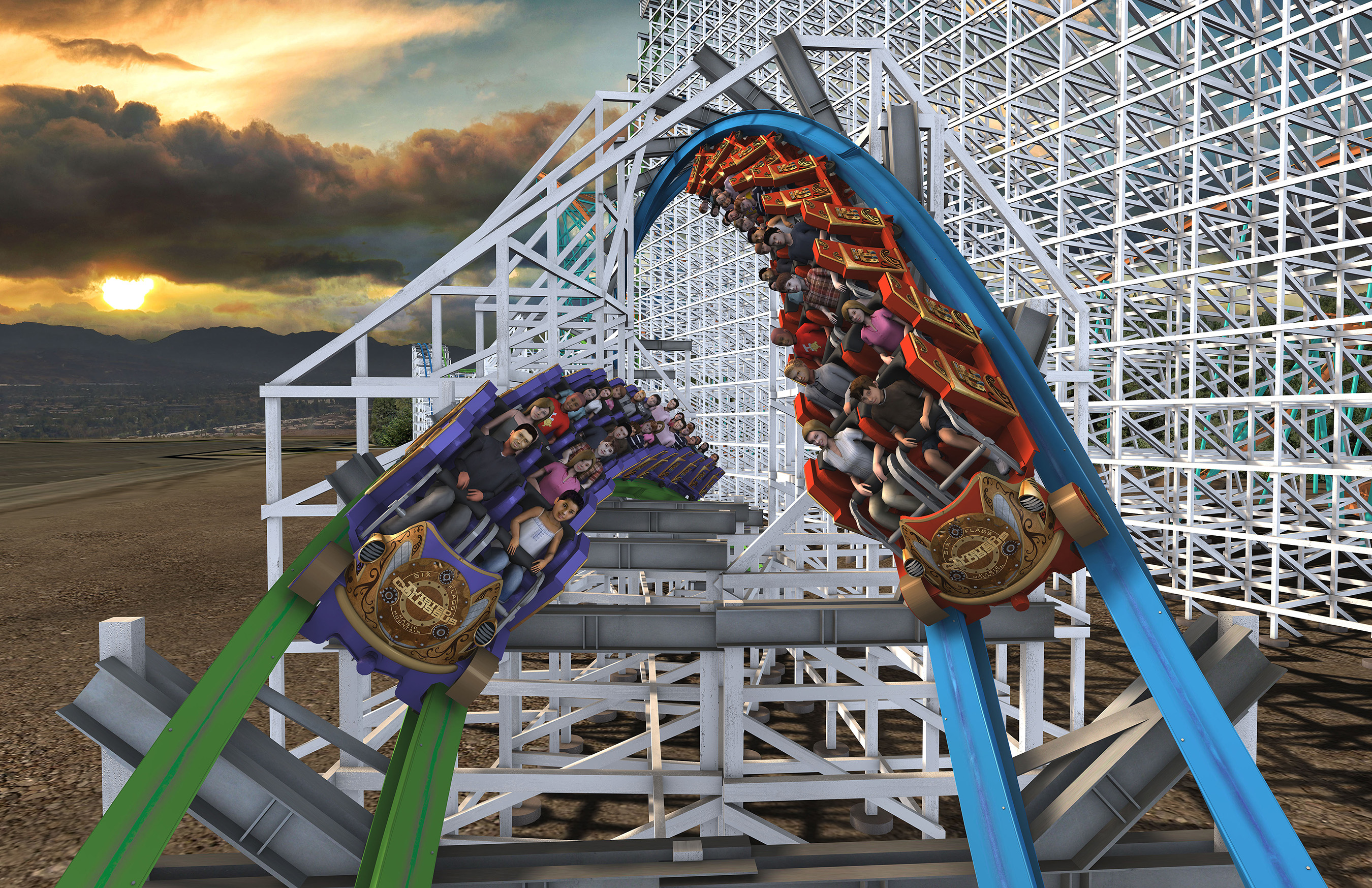 Twisted Colossus, the next generation of the beloved wooden roller coaster that thrilled millions of guests in its 36–year reign at the park, will be a unique technological marvel combining an iconic wooden structure with state–of–the–art Iron Horse Track. The advanced technology, available exclusively at Six Flags, provides ride experiences never before possible on wooden coasters, such as over–banked turns and inversions. Twisted Colossus will feature numerous exciting components including a “Top Gun” element, the western hemisphere’s first “High Five” element, and a Zero G Roll.