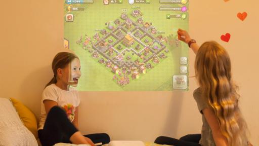 - At home: Bring family and friends together to play games, watch movies, share pictures and more. With the ability to use two styli at once, friends and family can join in on the fun, too. The projector can also replace other home media options — the 80” screen and functionality of Android apps make it a complete entertainment package that costs less than buying a similar-size TV and gaming console for the home.