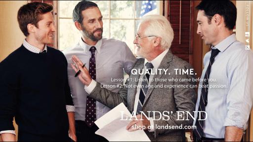 - The Quality.Time campaign is focused on the loyal, long-term customer and celebrates multi-generational families with a strong sense of community and heartfelt connections. Leveraging the current strength of the Lands’ End brand, it showcases great classics, apparel and accessories for the entire family.