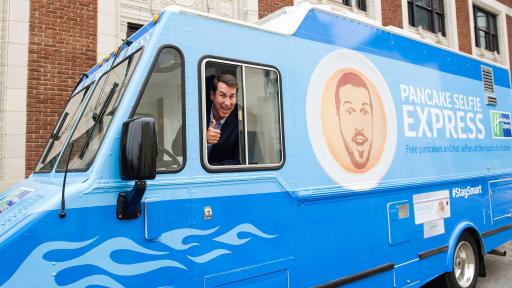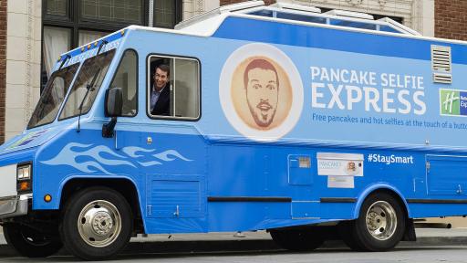 Consumers can visit the truck to snap a selfie and have it printed on a pancake made by “The Stack Station,” the Holiday Inn Express brand’s super smart, one-touch pancake machine.