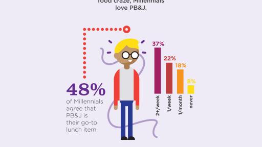 - Nearly 50% of millennials say PB&J is their go-to lunch item, with 37% eating a PB&J sandwich more than two times per week.