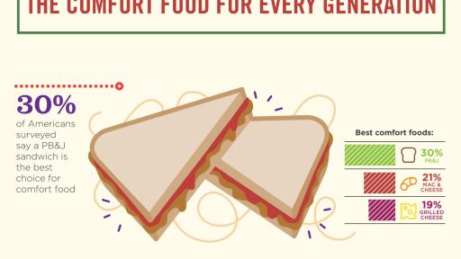 ORRVILLE, Ohio (October 15, 2015) – A Smucker’s PB&J Survey, conducted by Toluna1, reveals that PB&J sandwiches are a timeless classic. The survey found that one-third of surveyed Americans (30%) chose PB&J sandwiches as their favorite comfort food over mac and cheese (21%) and grilled cheese sandwiches (19%).