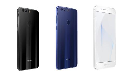 In the United States, the Honor 8 Android smartphone will be available in Sapphire Blue, Pearl White, and Midnight Black. MSRPs begin at $399.99 for the 32GB model and $449.99 for the 64GB model.