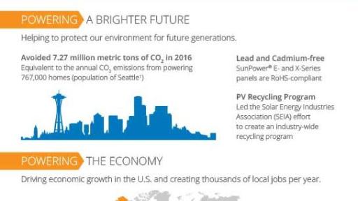 SAN JOSE, Calif., March 29, 2017 – According to Advanced Energy Economy, 71 of Fortune 100 companies set renewable energy or sustainability targets at the end of 2016. And with seven of the top 10 U.S. companies as customers, SunPower (NASDAQ:SPWR) knows firsthand the growing market need for an experienced, trusted solar advisor to help corporations efficiently and cost-effectively meet such goals. Released today, SunPower’s 2015-2016 Sustainability Highlights Report provides an overview of the company's own notable sustainability achievements, as well as its progress affecting sustainability-driven business practices in the solar industry and in corporations around the world.