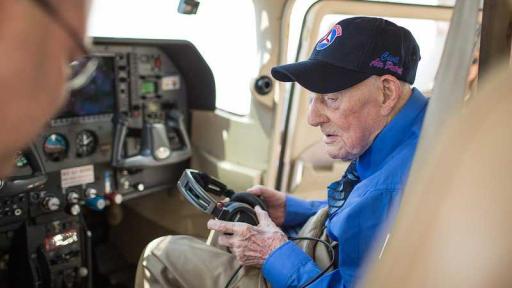 Each of the veterans highlighted here has their own story to tell, but what ties them together is their love of flight. Howard “Mac” McCue, 104, not only got his Wish to fly for the first time in 20 years but he was also surprised with the Congressional Gold Medal. Thrill seeker Jack Dorshaw, 97, got behind the controls and flew a fighter jet when his Wish was granted. Roger Dawson, 95, revisited the days he spent training pilots when he fulfilled his Wish to fly the SNJ-4 Texan again, the same aircraft he used in teaching other service members. Charlie Grace, 91, finally fulfilled his lifelong Wish when he piloted a fully restored P-51 Mustang fighter, something he had dreamed of doing since he first joined the military so many years ago.