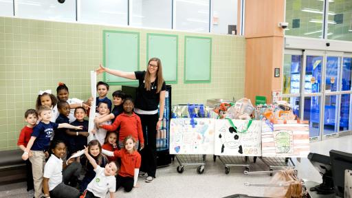 This month, thousands of pre-K and kindergarten children at more than 325 Primrose schools across the country are taking part in the annual Caring and Giving Food Drive. During the activity, children are asked to earn money through chores at home. They bring their donations to the classroom where they develop a budget and shopping list for healthy food items. Teachers model good citizenship and emphasize the importance of compassion through songs and books about sharing and giving to others. Then the children take field trips to grocery stores to shop for the food items, which are donated to local charities and distributed to those in need. By taking part in the act of giving, from earning the money for canned goods to planning healthy foods to purchase and shopping for the items, children learn the joy of giving firsthand.