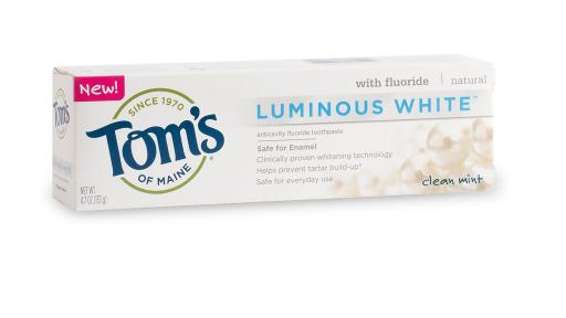 Tom’s of Maine new Luminous White is the most advanced natural whitening toothpaste from the natural oral care leader. It’s clinically-proven to naturally whiten by removing surface stains, while remaining safe on enamel with a mint flavor to help freshen breath. Luminous White, with a suggested retail price of $4.99, is made from biodegradable ingredients, mineral-derived ingredients, and water and is gluten and paraben free with no artificial colors, flavors, sweeteners or preservatives. The tube and its carton are both recyclable through the TerraCycle collection program.
